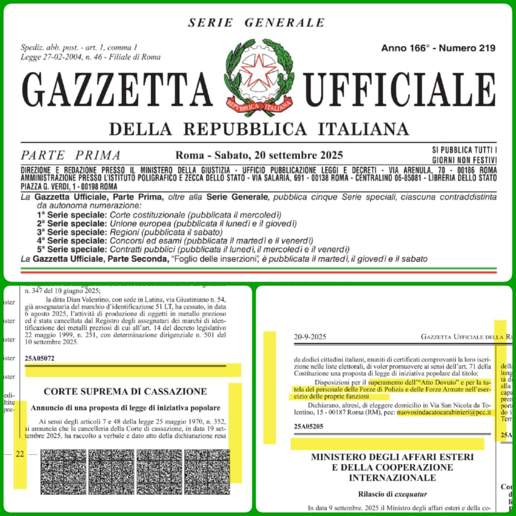 Avvio raccolta sottoscrizioni sulla proposta di legge di iniziativa popolare: disposizioni per il superamento dell'atto dovuto e per la tutela del personale delle forze di polizia e delle forze armate nell'esercizio delle proprie funzioni